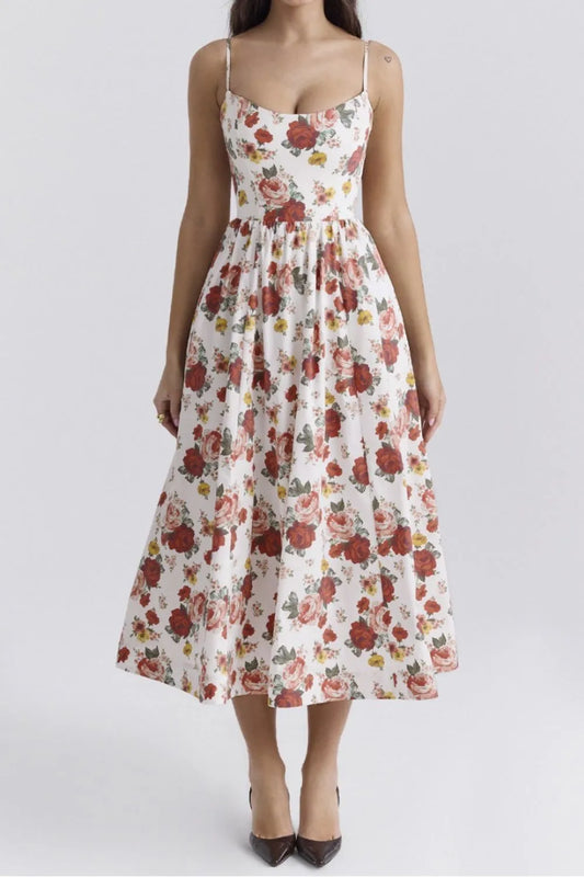 Floral Square Neck Wide Strap Midi Dress
